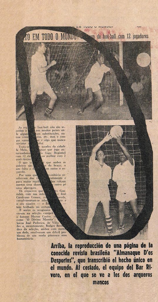 El primer sorprendido fue el árbitro, juez entonces, al ver al arquero José Caroleano Gómez, ex jugador del Wanderers de Melo, sin el brazo derecho perdido al caerse de un caballo.