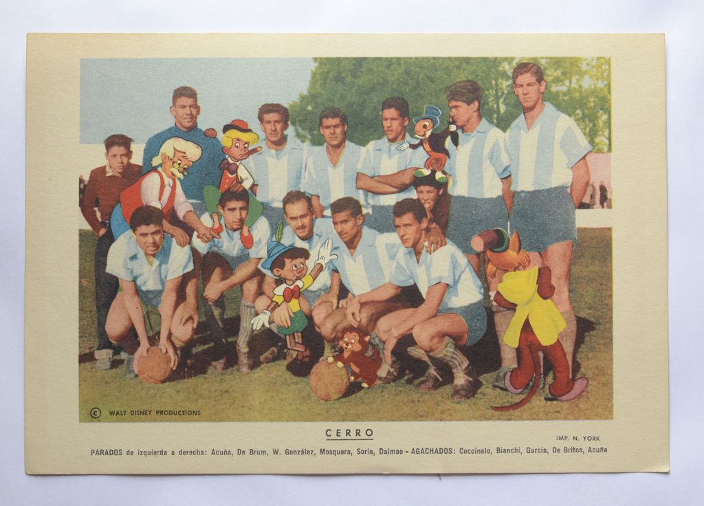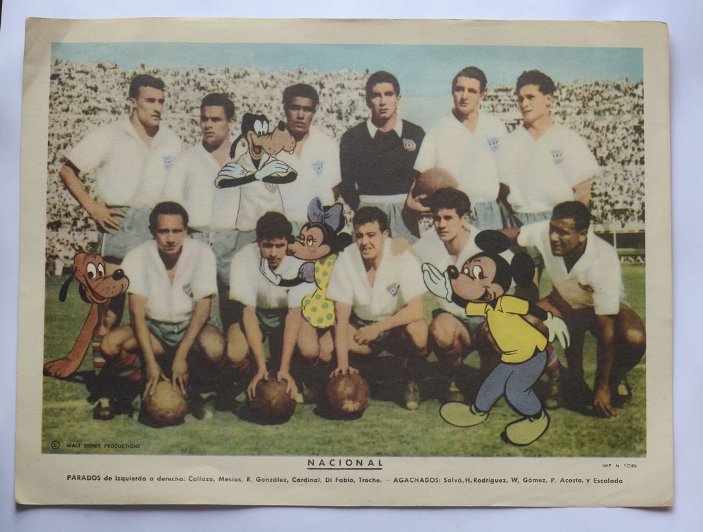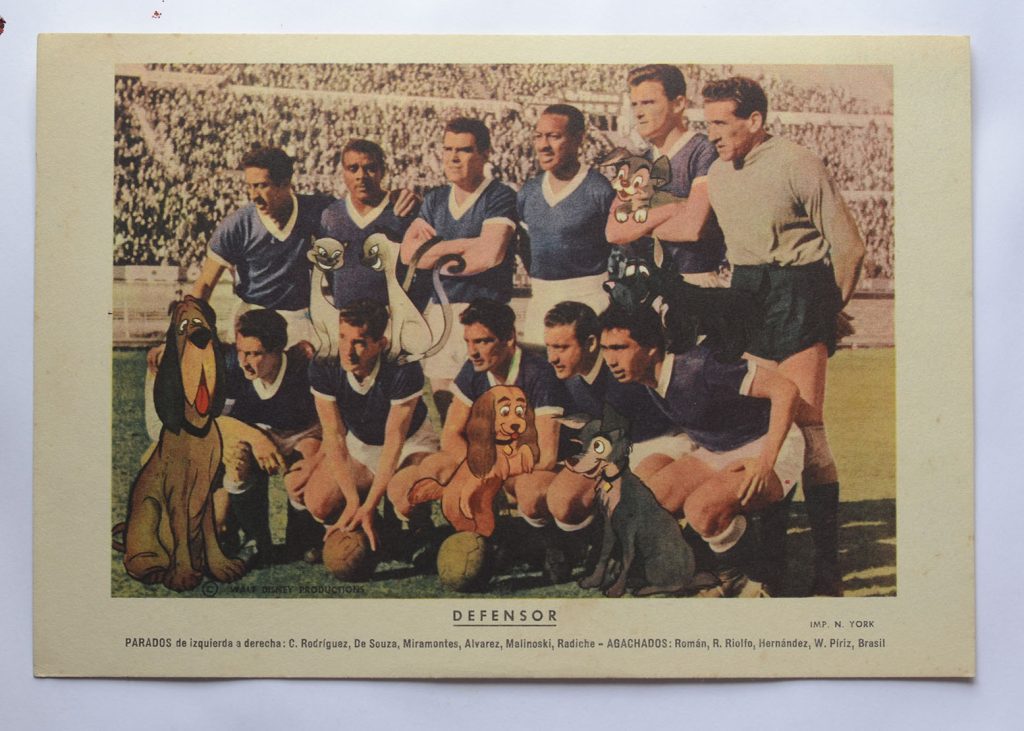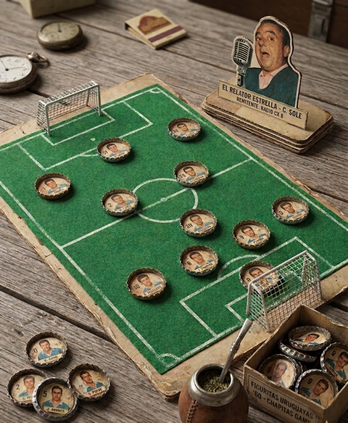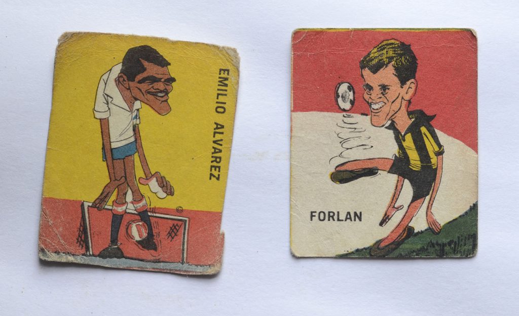 Parece un poco mucho, no? Casero, artesanal, pero cierto. Era enfermo por el fútbol. Me leía y escuchaba todo. Teníamos una de aquellas radios viejas, cuadradas, de madera, A válvulas, enormes. Me escuchaba todos los partidos desde la reserva, que antes se trasmitían. Conocía a todos los jugadores de cada cuadro, de primera y reserva. Además las figuritas, otra pasión, me ayudaban a identificarlos y memorizarlos. Sobre ella hay otra nota que escribí en esta misma Túnel, cuando era revista, de mi hermano Pedro Cribari y que hoy continúa en la web otro vocacional del espíritu deportivo, Pablo Aguirre. “El álbum de figuritas”, linda nota, porque me salió del alma. Tanto que la tradujeron al italiano y la publicaron en un portal. Las figuritas…Bueno, a lo que inventé. Armaba partidos imaginarios con las figuritas. En el piso o sobre una mesa grande. Once contra once. Como con los botones, pero con figuritas y sin pelota. La pelota eran las propias figuritas. Un constructor, padre de un amigo, me fabricó los arcos con maderitas y gasas en lugar de las redes. De arquero había un dominó con la figurita correspondiente delante. La pelota era imaginaria. La trasladaban los mismos jugadores (figuritas), metían pases, fouls, driblings, goles. ¿Cómo? Mis dedos índices de cada mano, movían el juego, uno por equipo. Tinguiñazos como los que te daban en la oreja cuando te agarraban distraído y te cortaban la respiración. Acá eran golpecitos sutiles en la figurita, más fuertes, más suaves, con comba, jopeadas, amagues. Una vez por equipo. Yo iba relatando, por ejemplo: “lleva la pelota Sasía, le sale a marcar Emilio “Cococho” Alvarez…” Si Emilio montaba un poco su figurita sobre la de Pepe era que se la sacaba, sino seguía Sasía acercándose al área, o podía patear de lejos o pasársela a un compañero. Un movimiento por equipo. Si Cococho golpeaba con su figurita a la de Sasía, era foul. No había tarjetas en esa época, pero sí expulsiones según la violencia de las faltas. Había desarrollado una habilidad tal que parecían partidos reales, con emoción y suspenso hasta el final.