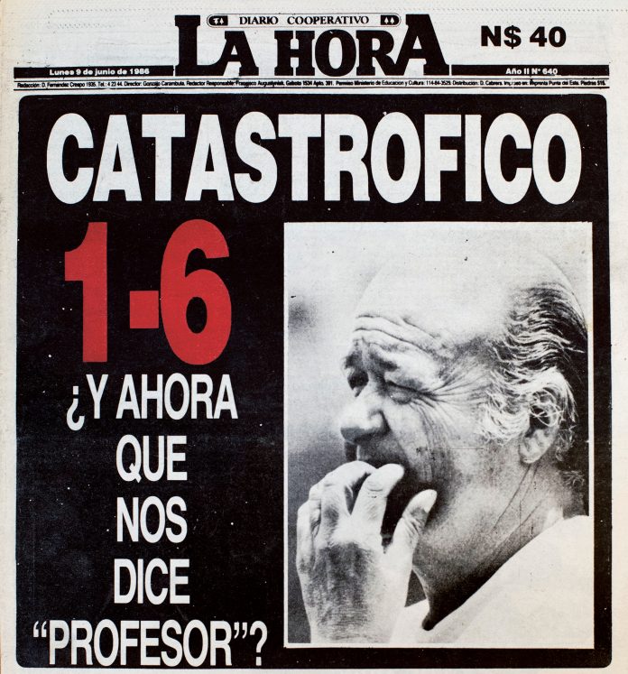 “Catastrófico” titulamos en la portada de La Hora y encabezando la crónica: “Para Dinamarca fue un paseo”. El País metió más letras: “¡Una derrota vergonzosa! Nunca nadie nos apabulló tanto; ¡Nos pasaron por arriba!”.